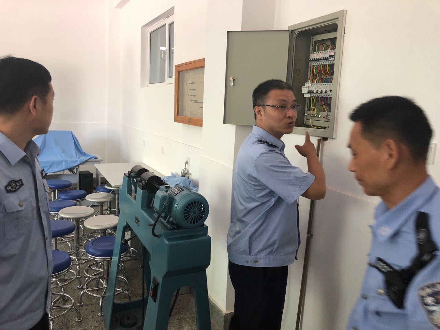 根据实验室与设备管理处《关于做好毕业季及暑假期间实验室安全管理工作的通知》要求,为保证暑假期间实验室安全,js33333金沙线路检测于2018年7月4日上午对各实验中心进行了安全检查。姚国凤副院长、苗淼老师、东区保卫办防火科科长韩旭及工作人员组成的检查小组对基础实验馆、第三教学楼、机械材料馆、工科基地和工程小院的各实验室进行了全面检查,各实验教学中心领导及实验教师配合了此次检查。