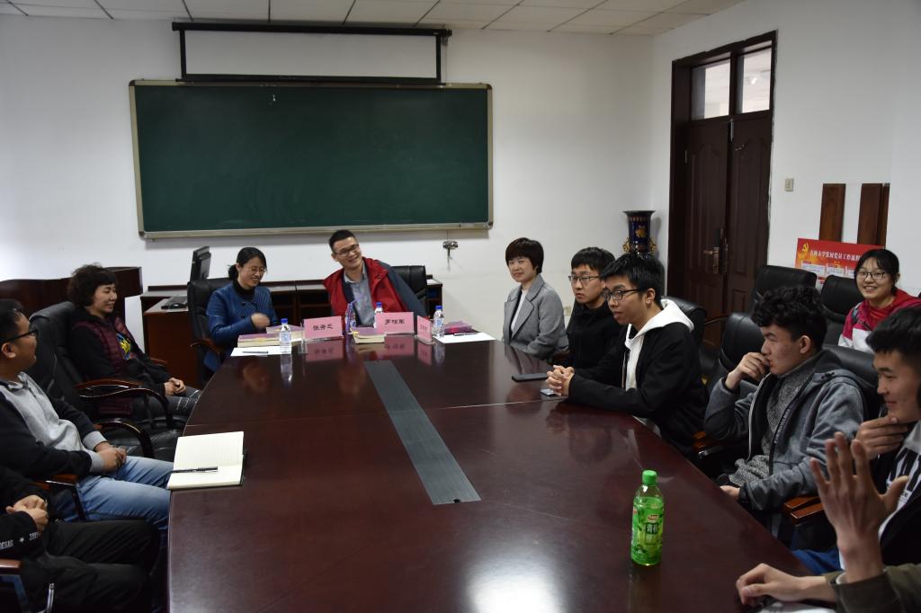 当日下午,部分学生代表与罗相军进行了座谈交流,工程与计算机图学教研室张秀芝老师等参加交流活动,同学们把自己学习和生活中的疑惑与老师进行了交流,各位老师结合自身经历和国学思想与大家进行了探讨。