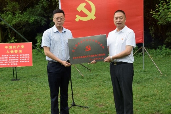 为庆祝中国共产党成立98周年,2019年6月30日,js33333金沙线路检测机械电子工程系教工党支部、吉林省东元精密机械有限公司党支部和公主岭经济开发区税务局党支部联合开展了以“党建引领 校税助力 推动民营经济发展”为主题的党日活动。