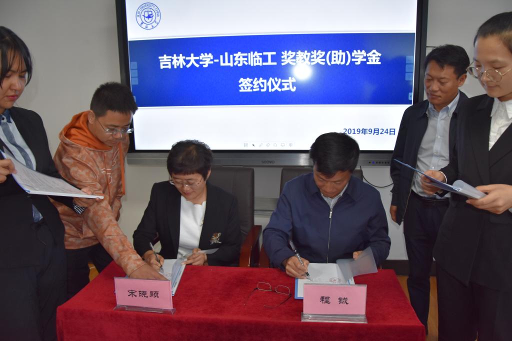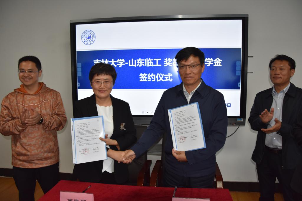 吉林大学机械学院与山东临工集团多年来始终保持着密切的产学研合作及业务往来,山东临工作为吉林大学大学生社会实践基地和毕业生就业基地,在人才培养、实习实践等方面给予机械学院大力的支持和帮助,自2010年开始在吉林大学设立奖教奖(助)学金。今年,在双方良好合作的基础上,山东临工继续设立10万元奖教奖(助)学金,用于支持我校教育事业发展。
