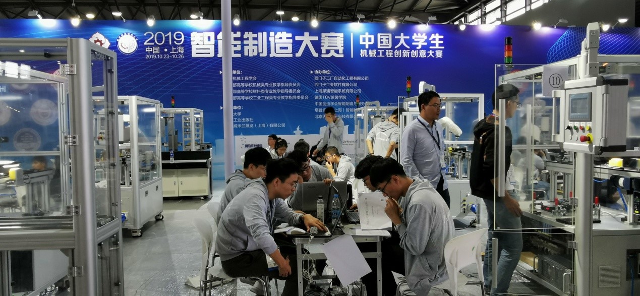 10月23—26日,中国大学生机械工程创新创意大赛—2019智能制造大赛在上海新国际博览中心举行,吉大学子继2018年在该赛事获得佳绩之后,本年度再次斩获一个一等奖和一个二等奖,并且两支队伍分别将产品设计与优化单项奖、产线建模与仿真分析单项奖、卓越奖、西门子系统工程师证书、西门子PLM软件认证工程师证书、综合能力荣誉证书、重磅的德国莱茵全球认证收获囊中!其中,吉林大学二队以总决赛第一的身份唯一获得参加在广州召开的中国机械工程年会2019年度工作会议并代表大赛领奖的资格!成为上海新国际博览中心2019智能制造大赛决赛场上最靓丽的风景线!