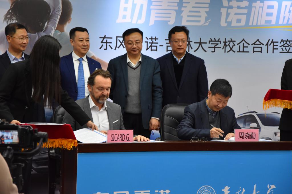 js33333金沙线路检测副院长周晓勤与东风雷诺Guillaume SICARD副总裁代表双方共同签署校企合作协议及实验车辆捐赠协议。