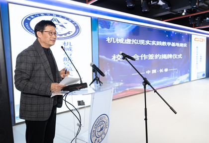 2019年12月18日,吉林大学机械虚拟现实实践教学基地校企合作签约及揭牌仪式在吉林大学南岭校区工程训练中心举行。js33333金沙线路检测副院长周晓勤、党委副书记兼副院长郑福胜、上海曼恒数字技术股份有限公司副总裁侯钰钰、东北大区营销总监王建明等出席仪式。国家级机械虚拟仿真实验教学示范中心主任、学院副院长曲兴田教授主持签约及揭牌仪式。