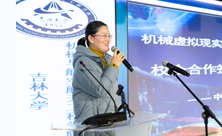 曼恒数字侯钰钰副总裁向现场师生介绍了曼恒数字在虚拟现实领域的探索之路,讲解了VR技术的国内外发展现状和趋势,并对与吉林大学的虚拟现实领域校企合作项目给予高度赞扬和肯定。