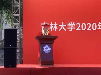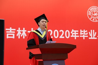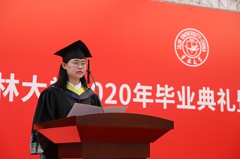 吉林大学自强自立大学生提名奖获得者、优秀毕业生代表王梓嘉发言,对学院老师的辛勤付出表示感谢。