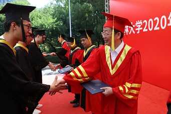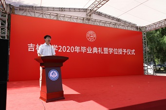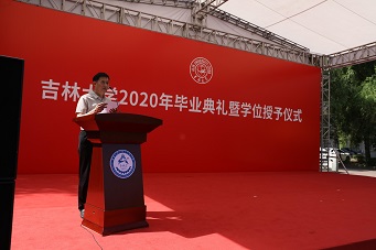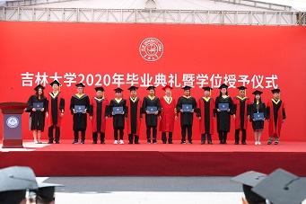 典礼上,副院长曲兴田教授宣读《关于表彰2020届吉林大学优秀毕业生的决定》,授予马梓健等23名同学吉林大学2020届“优秀本科毕业生”荣誉称号。主礼教授为毕业生授予学位,拨动流苏,并与毕业生合影留念。