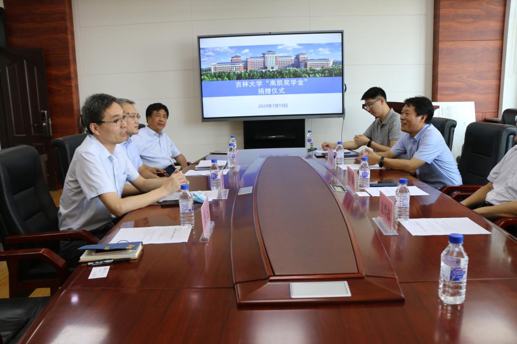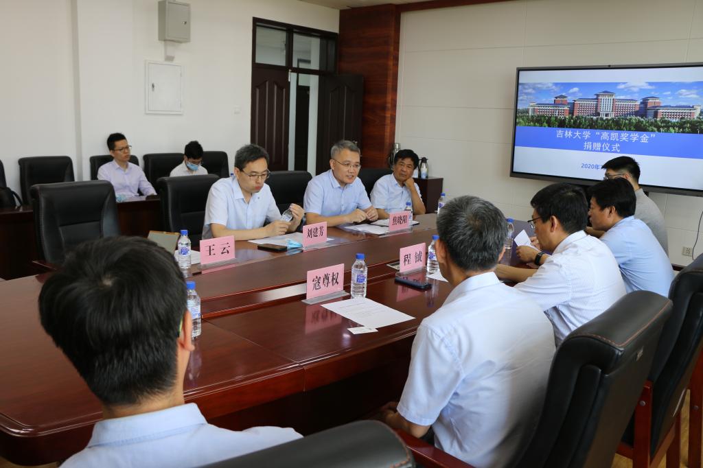 2020年7月10日上午,吉林大学“高凯奖学金”捐赠签约仪式在机械馆517会议室举行。江苏高凯精密流体技术股份有限公司总经理刘建芳,江苏高凯精密流体技术股份有限公司副总经理焦晓阳,js33333金沙线路检测党委书记程钺,党委副书记兼副院长郑福胜,机械基础教学中心副主任寇尊权出席捐赠仪式。仪式由学生工作办公室主任李佳亮主持。