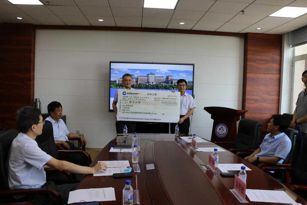 学院党委书记程钺与江苏高凯精密流体技术股份有限公司副总经理焦晓阳代表双方互赠捐赠支票和捐赠证书。