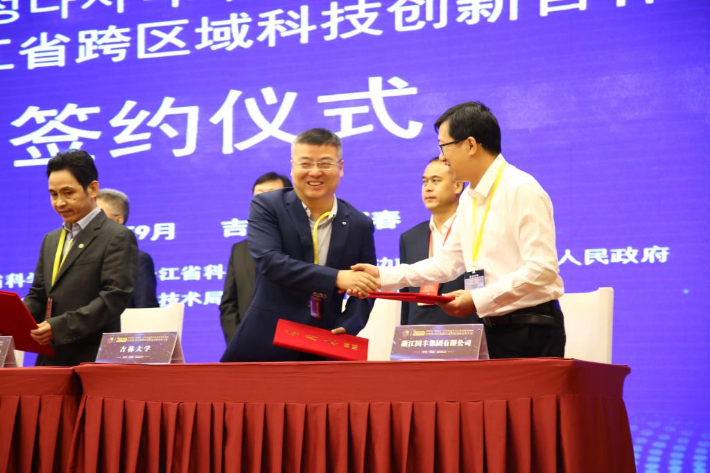 会上,两地政府部门、高校院所和企业间的11个科技合作项目完成现场签约,并发布了400余项来自吉浙两省的优质科技成果。js33333金沙线路检测刘春宝教授参会,与浙江省国丰集团有限公司签订了合作协议,就建设学生实践基地、共建实验室达成共识,并率先进行仿生外骨骼机器人产学研开发。