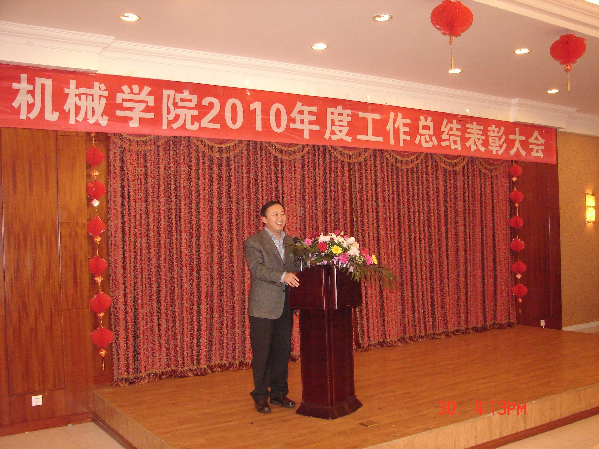 2010年12月30日,机械学院2010年度工作总结表彰大会在绿苑宾馆长白厅隆重召开,吉林大学常务副校长赵继教授、研究生院常务副院长赵丁选教授、人事处沈维利处长、妇委会主任申桂香教授应邀参加了此次表彰大会,会议由机械学院副院长魏波同志主持。