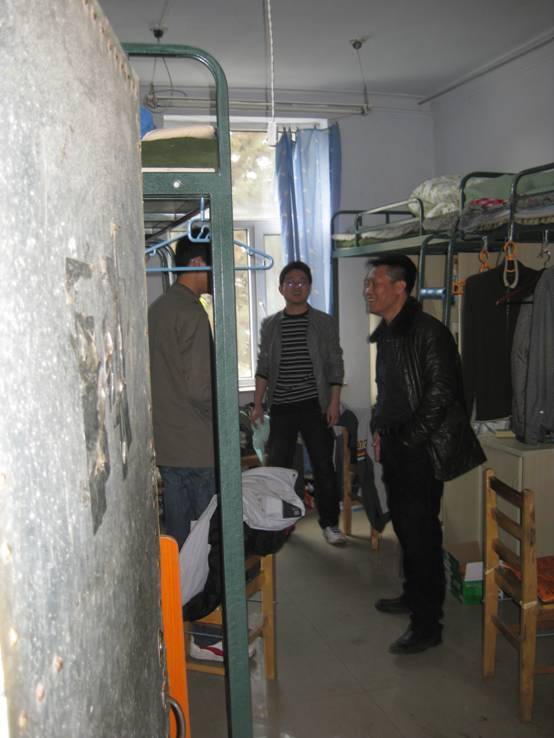 为了深入落实学校关于《吉林大学构筑消防安全“防火墙”工作实施方案》的通知精神,结合学校春季消防安全等要求, 2011年3月16日中午,机械学院研究生办公室联合南岭校区保卫办对同学的寝室进行了安全防火、违章用电等综合检查。学院党委副书记郑福胜、南岭保卫办孔凡昌、康乐老师及研究生办公室巴特老师、研究生会生活部及学院各年级学生负责人共同参与了此次检查。