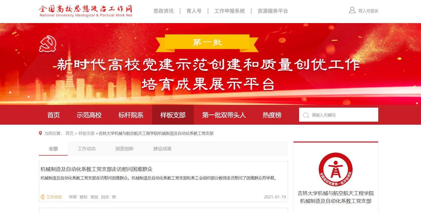2021年1月,js33333金沙线路检测机械制造及自动化系教工党支部顺利通过首批“全国党建工作样板支部”培育创建验收。