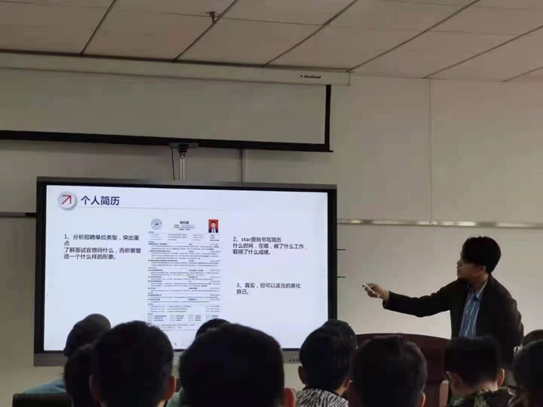 讲座主要根据郭松楠、李世超两位同学的亲身经历,围绕简历制作及公务员招录考试展开。郭松楠为同学们简要介绍了企业与机关事业单位工作内容、形式等方面的区别,着重介绍了参加选调生考试的相关事项,并对考取公务员的面试技巧分享了自己独到的见解,使同学们受益良多。李世超同学讲解了针对不同的企业应如何制作简历,还分享了自己面试事业单位的相关经验,同时他鼓励同学们要多尝试不同的企业面试,在实战中积累经验,同学们备受鼓舞,增强了信心。