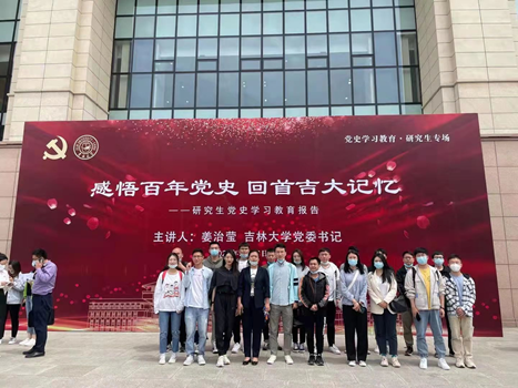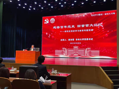 为庆祝中国共产党成立100周年,落实党中央关于在全党开展党史学习教育的工作部署,按照吉林大学党史学习教育工作安排,让广大研究生更好地学党史、知校史,更深入了解学校先贤与党同心、与国同行的故事,2021年5月26日上午,校党委研究生工作部特邀请校党委书记姜治莹老师为我校广大研究生做专题报告。js33333金沙线路检测党委副书记黄莹、辅导员曲艺老师带领研究生党员代表、研究生入党积极分子代表、研究生干部代表、研究生代表参加了此次专题报告会。