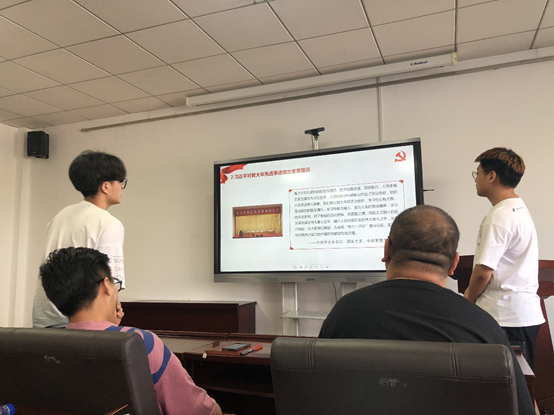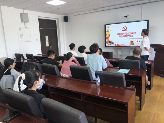 李子涵为研究生党员同志们介绍了吉林大学先进党员代表——黄大年同志的生平和先进事迹,总结了黄大年同志爱国敬业、淡泊名利、甘于奉献的高尚精神,坚定了新时代党员同志报效祖国的决心。