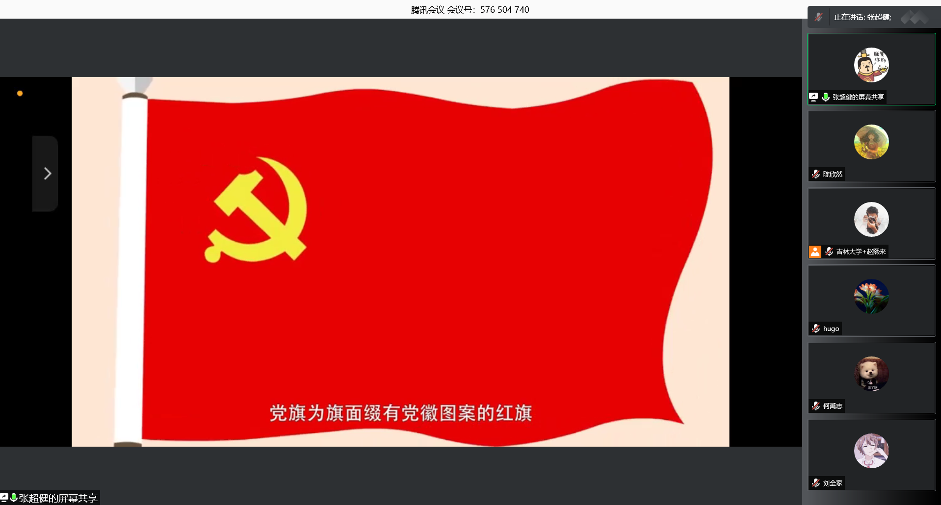 张超健同志通过播放短视频的方式生动形象地向同志们介绍了党徽、党旗的由来,让同志们深刻认识了党徽党旗是中国共产党的象征和标志,维护党徽党旗的尊严就是维护党的尊严,是各级党组织和每名党员必须履行的政治责任。《条例》的制定和实施,对充分发挥党徽党旗的政治功能,增强党的凝聚力、战斗力有着十分重要的意义。