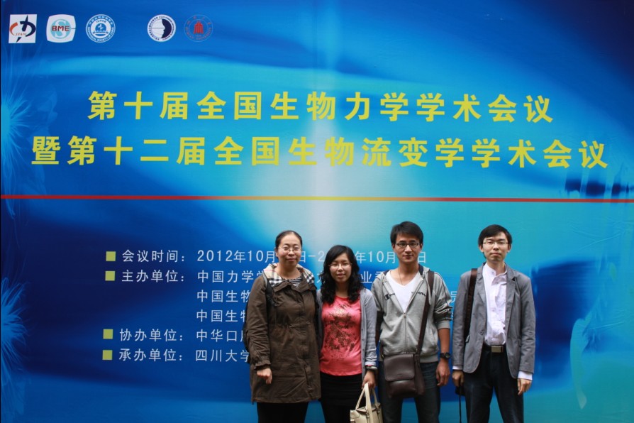 2012年10月11日至10月15日,机械学院工程力学系生物医学工程专业宫赫教授带领研究团队成员吕林蔚、张睿、方娟三位博士生赴成都参加第十届全国生物力学学术会议暨第十二届全国生物流变学学术会议。全国生物力学学术会议和全国生物流变学学术会议每3年一届,今年两个会议同时召开,由四川大学承办。
