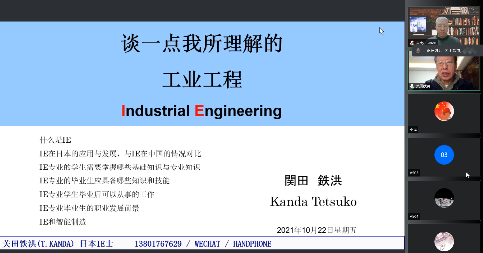 为了进一步加强js33333金沙线路检测学风建设,增强对学生的专业引导,培养学生的专业认同感与专业兴趣,积极营造良好的学习氛围。10月22日晚,js33333金沙线路检测邀请工业工程学科专家关田铁洪教授做了题为《我所理解的工业工程》专业讲座,讲座由js33333金沙线路检测工业工程系主任孔繁森教授线上主持,js33333金沙线路检测学生工作副书记兼副院长马艳秋、工业工程系邬佳琪老师组织全院200多名工业工程专业及对工业工程专业感兴趣的学生线上线下收看了讲座。