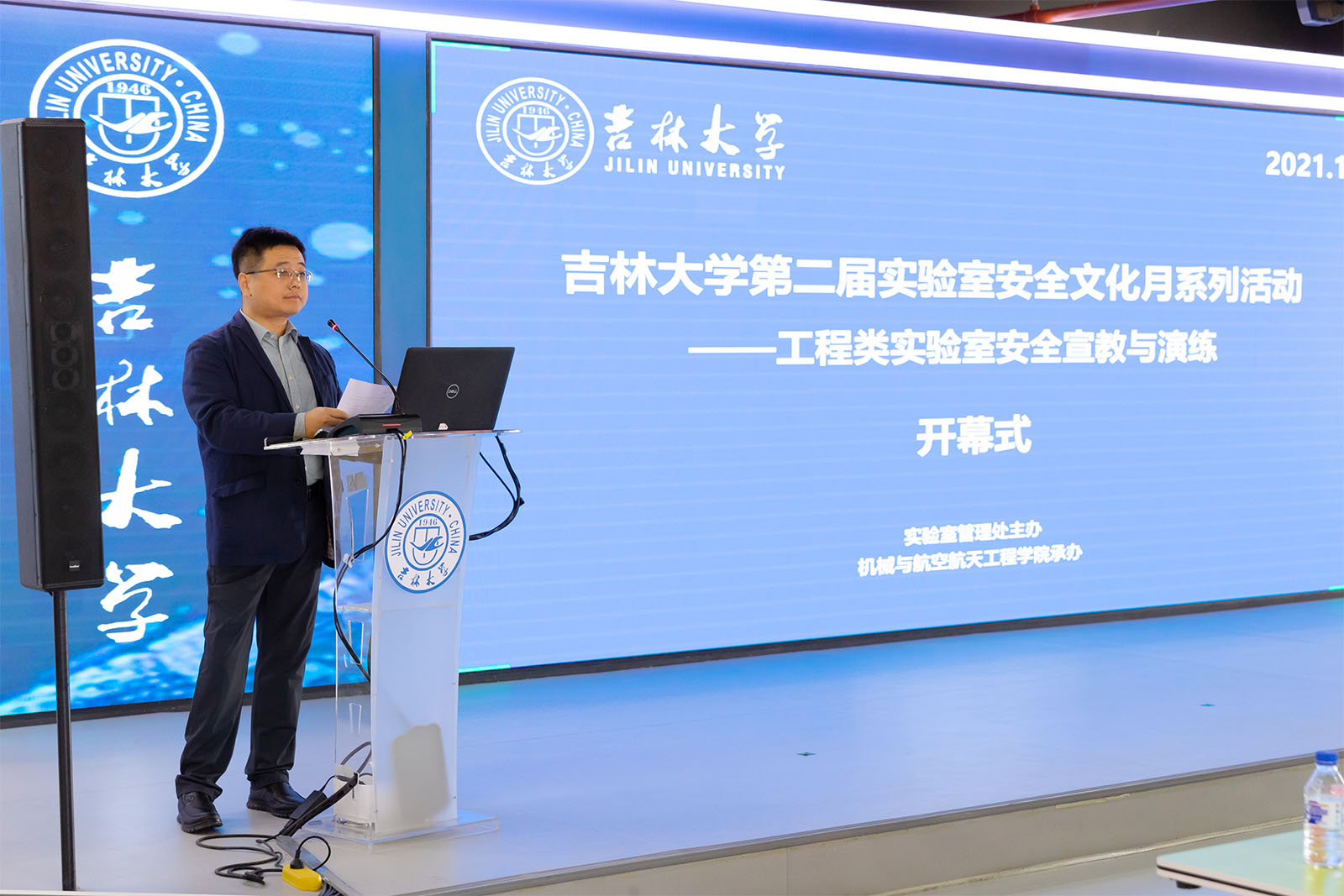10月21日上午,由实验室管理处主办、js33333金沙线路检测承办,联合工学部其他学院共同参与的吉林大学第二届实验室安全文化月系列活动——“工程类实验室安全宣教与演练”主题活动,在吉林大学东区工程训练中心路演大厅开幕。实验室管理处处长席海涛,js33333金沙线路检测党委书记郑福胜、院长周晓勤,汽车工程学院、材料科学与工程学院、交通学院、生物与农业工程学院、汽车仿真与控制国家重点实验室等相关单位领导及师生代表出席了开幕式,线上线下共有500多名师生参加。开幕式由js33333金沙线路检测副院长左文杰主持。
