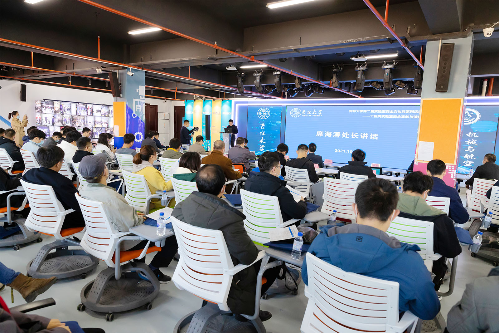 开幕式上,国家级机械基础实验教学中心主任董景石、交通学院路桥实验室主任毕海鹏为参会师生做了实验室安全管理主题报告,向大家分享了他们在安全管理方面丰富的工作经验。随后,由学校环境安全督查专家徐泽老师、东区保卫办消防科刘海江老师,针对工程类实验室规范管理和消防安全知识等内容,向师生进行了培训。
