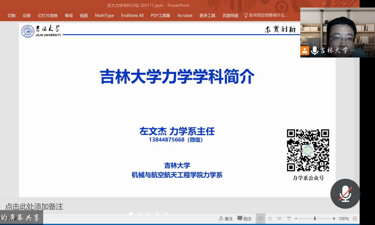 11月5日晚,左文杰教授为学生进行了力学专业和学科介绍,学院全体新生、对力学专业感兴趣的大二学生在线收看。他为学生讲述了力学学科的发展历程,阐述了力学与其他学科的关联,并通过解读js33333金沙线路检测力学专业培养方案,向同学们展现了学院独具特色的培养模式。同时,他还根据历年力学专业学生的就业数据以及行业发展现状,分析了力学专业的就业形势与发展前景。在答疑环节,同学们积极提问,踊跃参与,左文杰老师为学生耐心讲解,答疑解惑。最后,他希望同学们能牢牢把握时代机遇,打好自身基础,扎实掌握专业知识,更好地适应未来的学习及工作。
