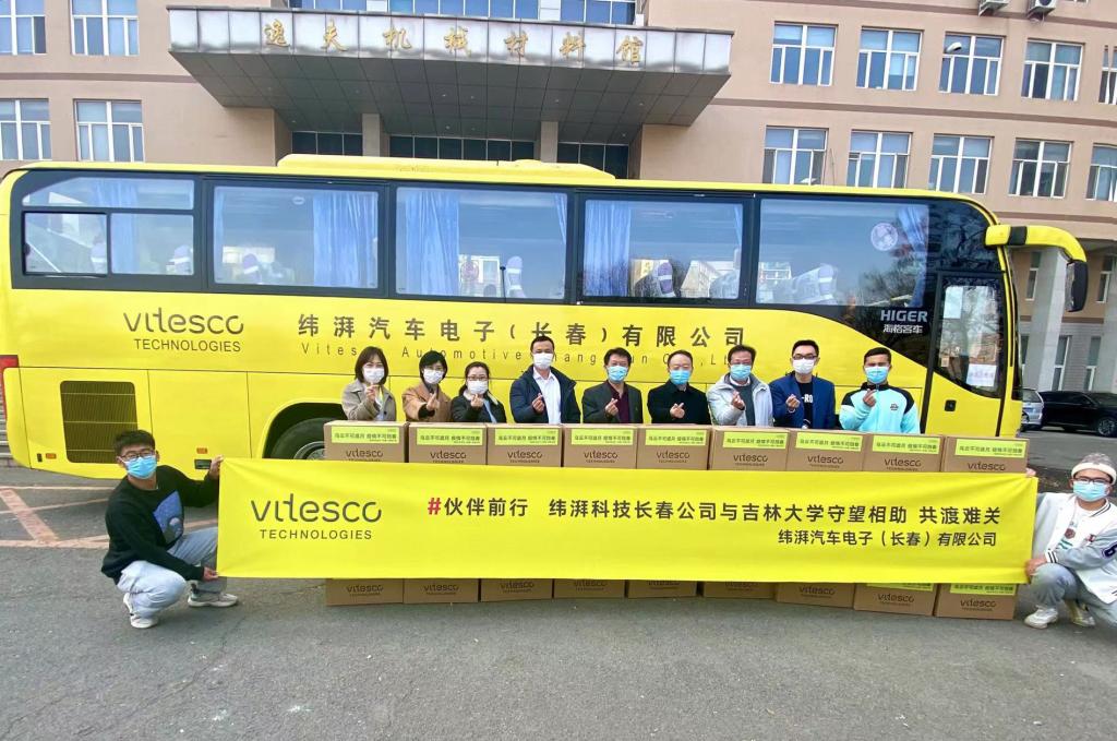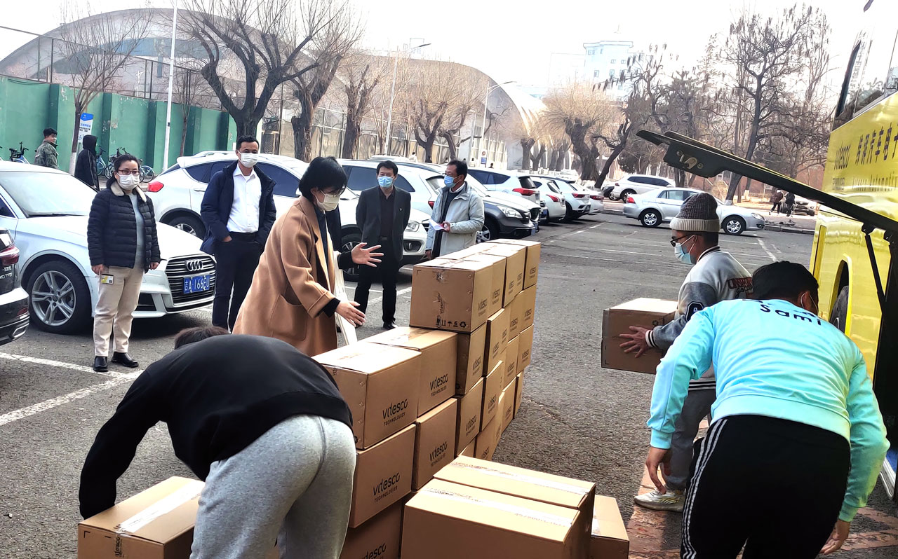 在得知疫情形势严峻的消息后,纬湃汽车电子(长春)有限公司心系高校,第一时间调配了36箱共计2.83万只口罩,迅速与js33333金沙线路检测取得联系,并由总经理江怀生、人力资源总监李丹丹和工艺工程总监殷宏志亲自带队运送,为师生提供防护保障。