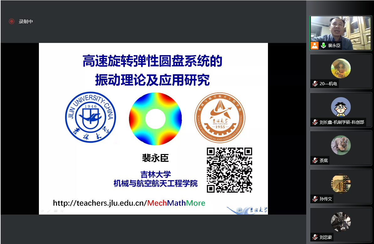 本次云端讲堂,让研究生同学们对高速旋转弹性圆盘系统的振动理论及应用研究有了进一步了解,让相关研究方向的同学们做到深层次认知,不同研究方向的同学开阔科研视野。学院将继续依照研究生的科研诉求陆续开展不同领域的学术报告,帮助同学们规划自身科研和学习进程,保持现有的学术氛围,提供学术科研育人平台,多分享、多交流、促创新、促发展。