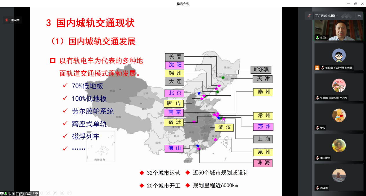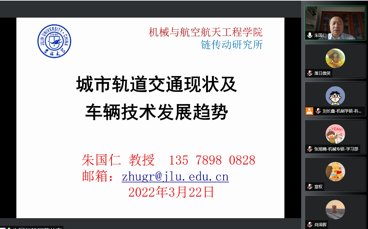 全校疫情防控的关键时期,为丰富校园封闭管理生活,满足js33333金沙线路检测研究生的科研诉求,引领同学们开展高质量学术研究,2022年3月25日下午,js33333金沙线路检测举办了第三期““疫”路同行,感“械”有你”云端讲堂系列学术报告会。本次会议特邀朱国仁教授,就“城市轨道交通现状及车辆技术发展趋势”主题开展学术报告。