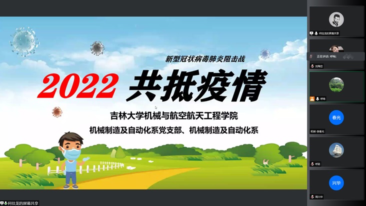 2022年3月26日,机械制造及自动化系党支部组织召开了全系大会。会议线上举行,由党支部书记呼咏主持。会议主要内容包括学习习近平总书记关于疫情防控工作重要指示批示精神、吉林大学委员会关于新冠疫情应急管控时期加强党的建设的指导意见和抗疫精神专题学习、开学以来全系工作总结和下阶段工作安排等。