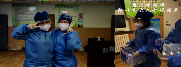 从开始封寝到现在已经有近两周的时间了,我很荣幸能成为一名志愿者,用我最力所能及的方式,参与到这场战“疫”当中。每天凌晨6点多伴随着我醒来的是老师和同学们在志愿者群中的激励,简单地收拾自己后,按照规定穿上防护服,戴上口罩、帽子、手套、鞋套和护目镜,新的一天就这样开始了。