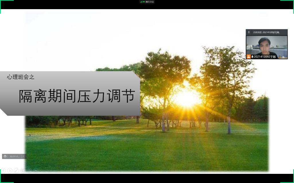 为帮助研究生关注封闭管理期间自身的情绪变化,舒缓心理压力,利用团体动力和人际支持,促进学生思想道德素质和心理健康成长,2022年3月21日—26日,在吉林大学学生心理健康指导中心的指导下,js33333金沙线路检测开展了“心灵沟通”主题班会活动。本次活动由研究生辅导员曲艺老师指导、朋辈心理兼职辅导员赵蒙莉组织,21级研究生各班心理委员、班长协助开展,旨在面向21级全体研究生进行心理疏导,缓解情绪。