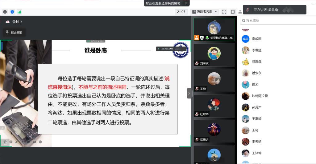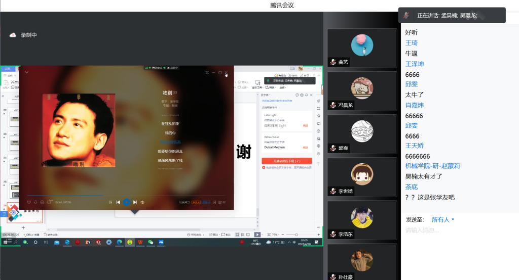 心理健康系列活动目的是增进同学之间的情感交流与互动,引导同学们树立正确的人生观、价值观。曲艺老师鼓励同学们在疫情封闭管理期间要保持良好心态,积极参与活动,希望系列活动能够丰富同学们的寝室生活。活动包括三个环节,分别是谁是卧底、鬼畜猜猜猜和你来比划我来猜。现场气氛活跃,同学们全身心投入到激烈的脑力角逐中,在紧张刺激的游戏环节中斗智斗勇,感受着专注和创造所带来的愉悦体验,在欢声笑语中,封闭管理带来的带来的情绪压力也得到了极大的缓解。最后,主持人即兴演唱了一首《吻别》为本次茶话会划上了圆满的句号。