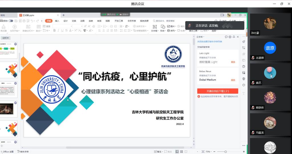 为帮助js33333金沙线路检测研究生更好地适应封闭管理生活,增加宅寝生活的趣味性,2022年4月12日,js33333金沙线路检测举办了研究生“心疫相通”茶话会。活动通过线上形式进行,由研究生孟昊楠主持,研究生辅导员曲艺与js33333金沙线路检测部分研究生共同参加。