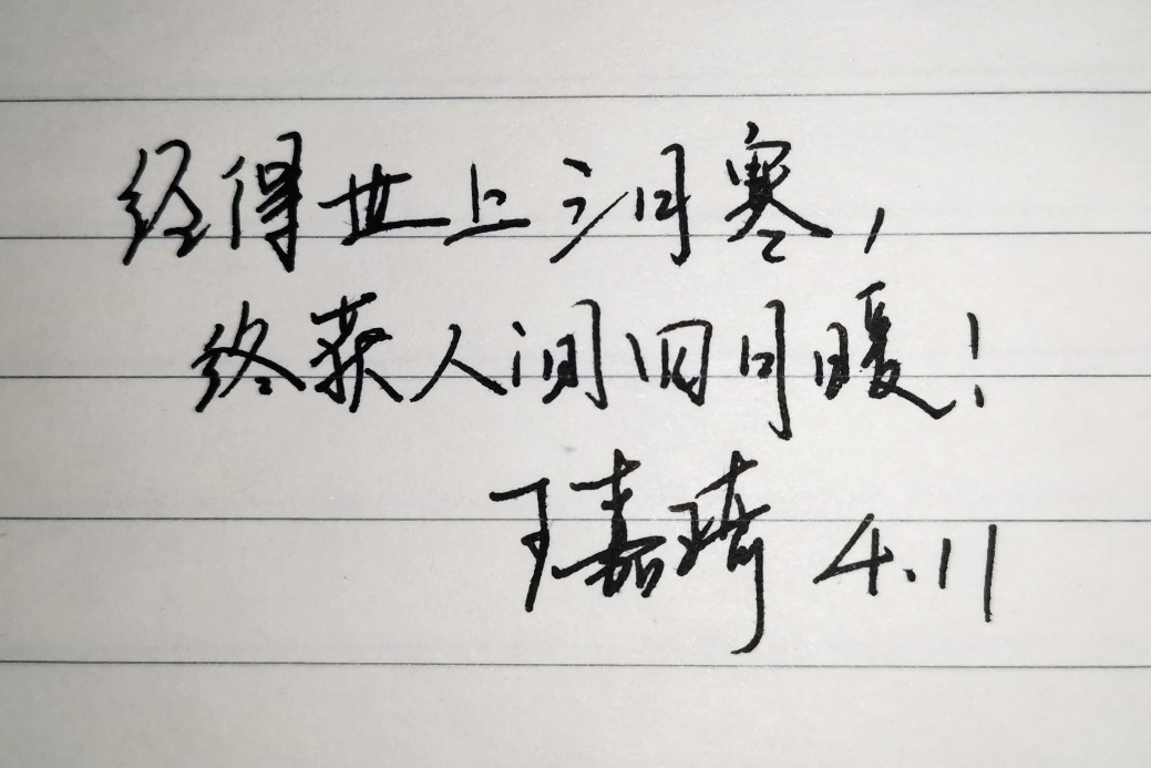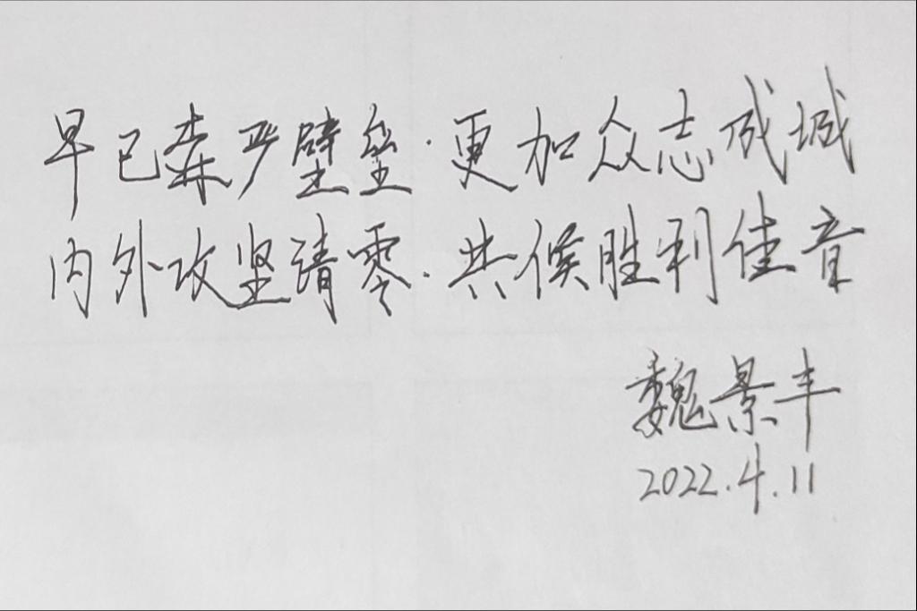 为深入贯彻落实我校对疫情防控工作要求,js33333金沙线路检测组织“落笔祈愿、抗疫心语”线上寄语活动,以“抗疫寄语”表情感、强信心、寄嘱托。从4月11日至4月13日,js33333金沙线路检测老师和同学们踊跃参加、快速响应,用一幅幅生动的笔墨书写最动情的话语。在这别样的春日里,一句暖心话、一句祝福语、一段激励词,是js33333金沙线路检测师生内心由衷的感受,也是js33333金沙线路检测师生无惧疫情、充满信心的体现,更是js33333金沙线路检测师生对战胜疫情后美好未来生活的期待!