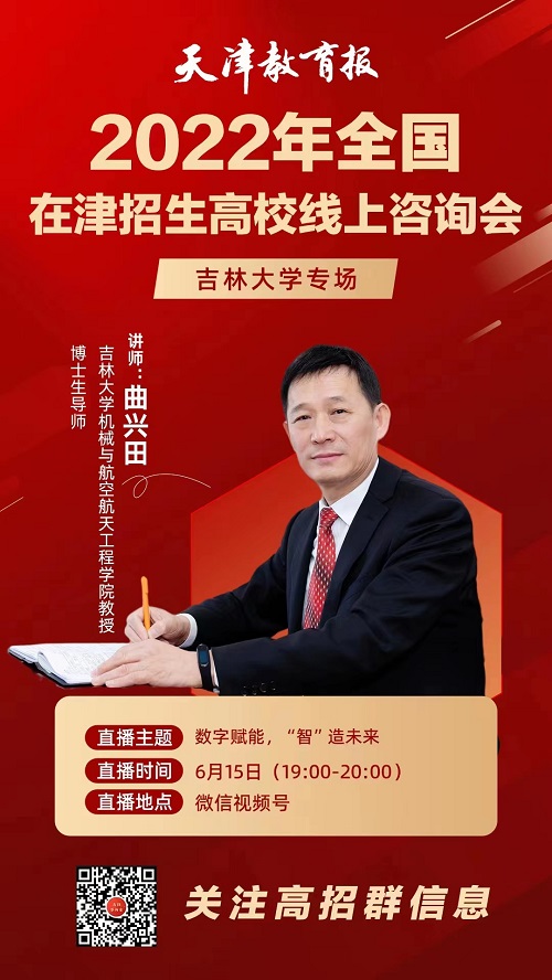 6月18日至25日,学院曲兴田教授先后做客天津教育报组织的天津报考视频直播间、贵州省专场线上招生宣讲会、天津市招生考试院线上平台开展线上宣讲会,他向考生及家长详细介绍了吉林大学概况和专业情况,特别介绍了js33333金沙线路检测的学科特色、专业优势等,并就评论区问题进行了幽默热情、耐心细致的解答。