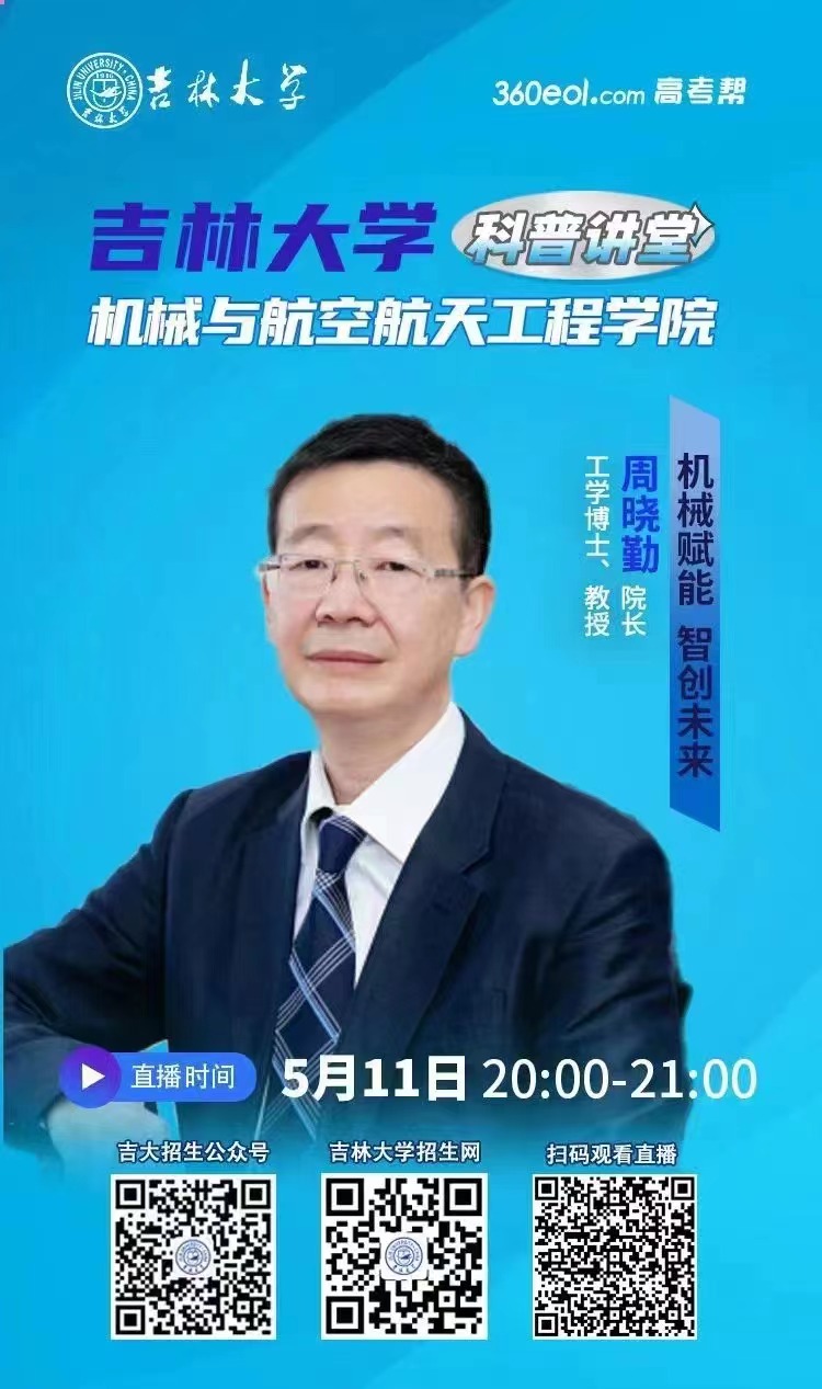 5月11日,学院通过高考帮和360教育直播平台,面向全国高三学子及家长进行本科生招生宣传。院长周晓勤以《机械赋能,智创未来》为主题,详细介绍了学院的发展历程和学科特色,同时围绕人才培养特色、科学研究方向、学生就业发展等方面,为广大高三考生及家长带来了细致、全面的解读,直播访问量近万人次。