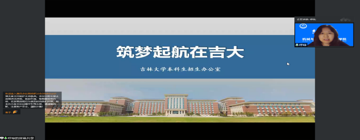 6月13日至20日,学院呼咏教授、刘欣副教授通过高招通、高考帮平台、天津日报组织的腾讯会议等开展本科生招生宣讲,学院党委书记郑福胜、党委副书记兼副院长马艳秋作为咨询嘉宾全程参与。呼咏老师从学校的发展历程、学科特色、人才培养等方面有温度、有深度地介绍了吉林大学的总体情况,刘欣老师对js33333金沙线路检测的专业设置及学科特点进行了全面细致讲解。