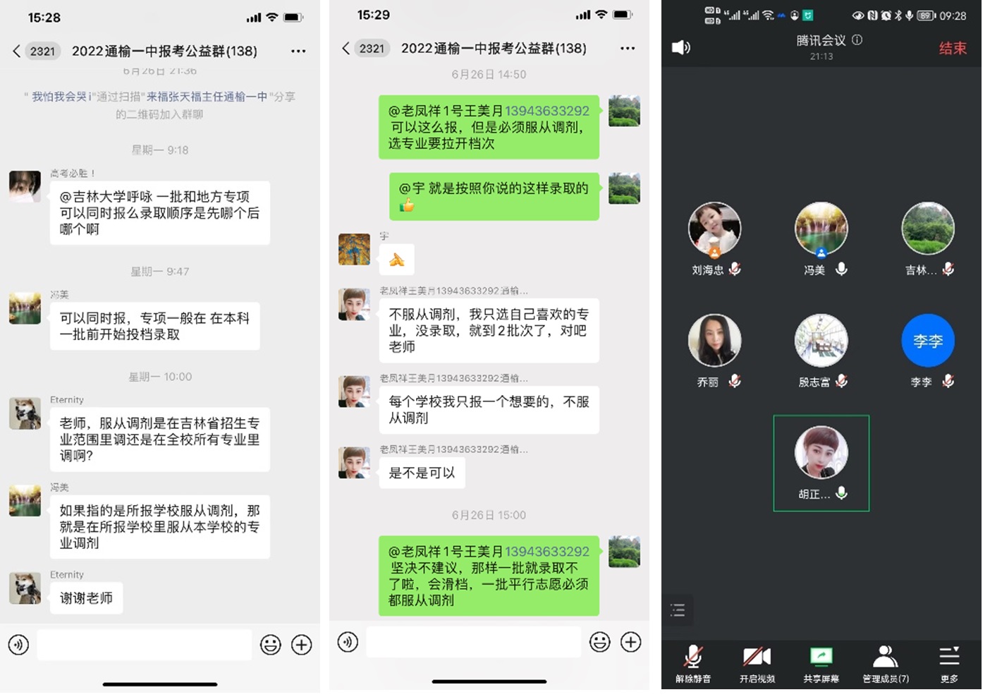 2022年6月25日,机械制造及自动化系教工党支部举办了“通榆一中高考志愿填报咨询会”,会议采用腾讯会议开展,同时利用微信群进行实时答疑,以实际行动为群众做好事、办实事。支部书记呼咏、副书记刘欣,党员张富、冯美、何佳龙、殷志富、刘海忠等为即将报考的学子提供了非常细致、具体的咨询服务,为学生和家长们解答了学校、地域、专业前景、未来就业等方面的疑问和困惑,并根据具体分数和兴趣为考生提供了专业的、切实可行的填报志愿指导。
