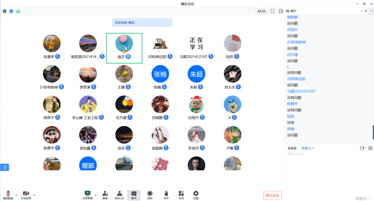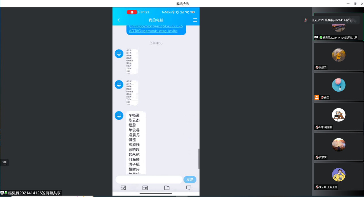 辅导员曲艺根据各个年级研究生的不同情况,围绕暑假期间研究生思想动态变化情况、科研工作进展情况、择业意向及就业情况、学习及生活面临的问题、对新学期的展望与期待等方面,与各研究生代表进行了交流。21级研究生代表就暑假思想变化动态及自身科研进展情况两方面与大家分享:徐浩谈及自身课题组内项目较多,出差时间长,故研一期间本身科研进展一般,计划在研二期间加快自身课题进展,做好开题工作,整体状态良好;赵超越谈到了上半年的长春疫情,期间虽然本身的科研有所怠慢,但感受到了学校的关怀和志愿者的辛苦,暑假自己和老师一起出差,受益颇丰。曲艺也鼓励同学们要坚定信心、克服困难,开学之初为科研开展打下良好的基础。期间,曲艺向新上任的20级学硕班班长沈阳表示欢迎,鼓励沈阳在学生工作岗位上能够继续加强班级凝聚力,为班级同学服务。20级硕士研究生们正值求职季,安鹏谈及了目前就业形势及求职进程的问题,受疫情影响,就业形势较为严峻,自身也还处于简历投递状态;刘士杰、陈德平等其他同学也和大家分享了自己暑期实习经历和获取求职信息的一些渠道,同学们表示收获满满。曲艺希望同学们能够根据自身优势特点选择合适岗位,勉励大家要提升就业能力,增强自信,直视挫折,通过自己的努力找到心仪的工作。