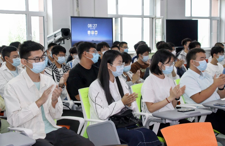 随后,全体新生观看了吉林大学2022年新生开学典礼。典礼上,新生代表以及在校博士生代表的发言令在场学生深受鼓舞,教师代表任雷老师的讲话使学生深受启迪。校友代表王巍学长鼓励新生们,要满怀热爱地投入到学习知识中去,带着责任感读书实践,增长才干;要脚踏实地地投入到科学研究中去,带着使命感探索未知,追溯本源;要敢于担当地投入到祖国和人民的事业中去,带着自豪感坚定自信、自主创新。学长精彩的分享激励着在场的每一位同学,不时响起热烈的掌声。