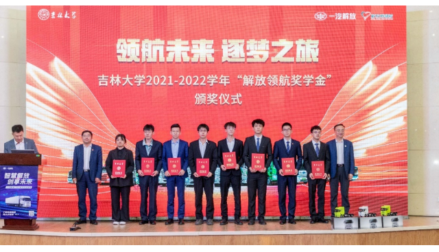 活动开始,吉林大学校友和基金工作办公室副主任丁连涛宣读 2021-2022 学年“解放领航奖学金”获奖学生表彰决定吉林大学和一汽解放双方领导嘉宾分别为获奖学生颁奖。一汽解放人力资源部部长杨术军代表一汽解放集团向获奖同学表示祝贺,向关心支持一汽解放的吉大师生表示感谢。他回顾了一汽解放69年的光辉历程和不断突破创新的发展成就,以及与吉林大学共同开展的多方面深度合作。紧接着吉林大学党委学生工作部副部长梅士伟在致辞中对一汽解放集团设立“解放领航奖学金”的育才善举表示感谢。他谈到,学校紧密围绕立德树人根本任务,接续传承红色基因,不断发挥学科综合优势,服务国家亟需和科技自立自强。希望校企双方继承优良传统,创新合作模式,进一步加强在各领域的优势互补和资源共享,在人才培养上取得新突破、在校企合作上创造新成果、在社会服务上作出新贡献。颁奖典礼结束后,现场举行了一汽解放集团2023秋季校园招聘专场宣讲会。