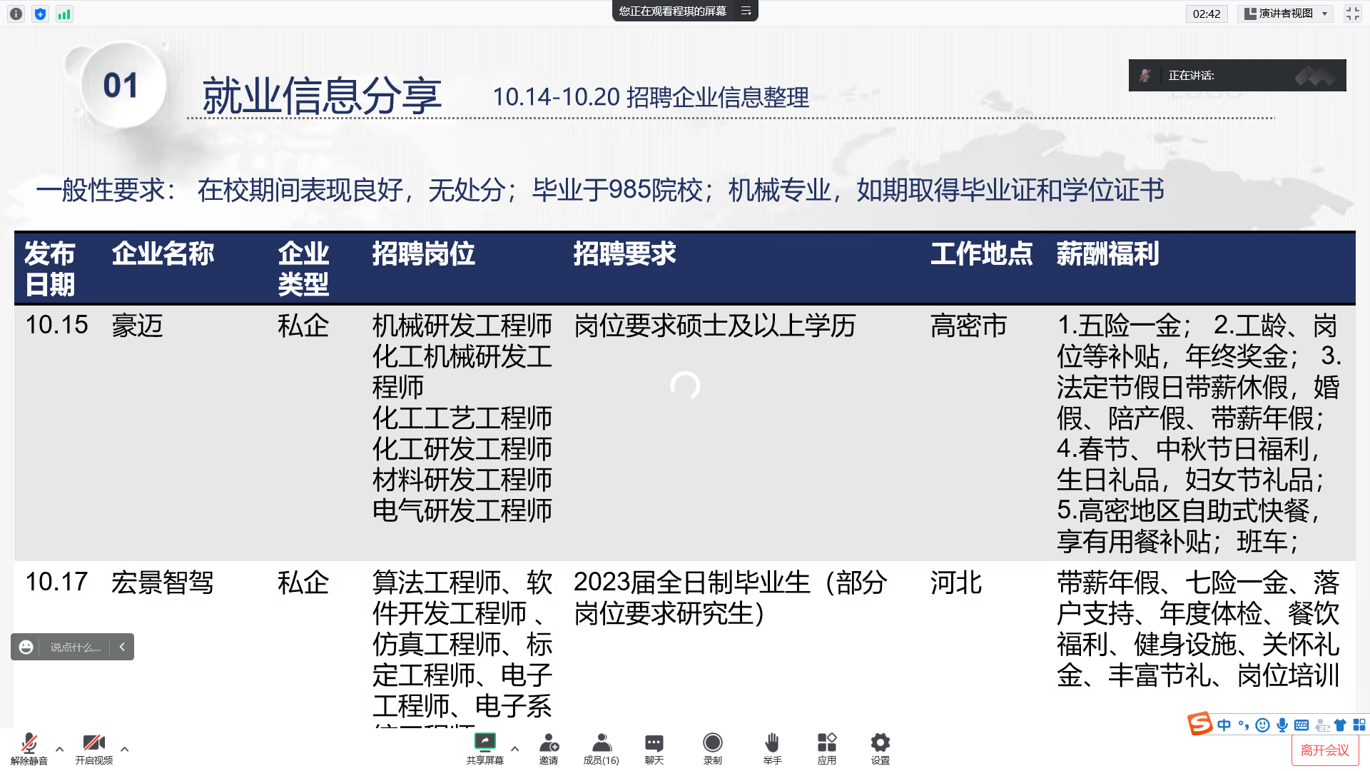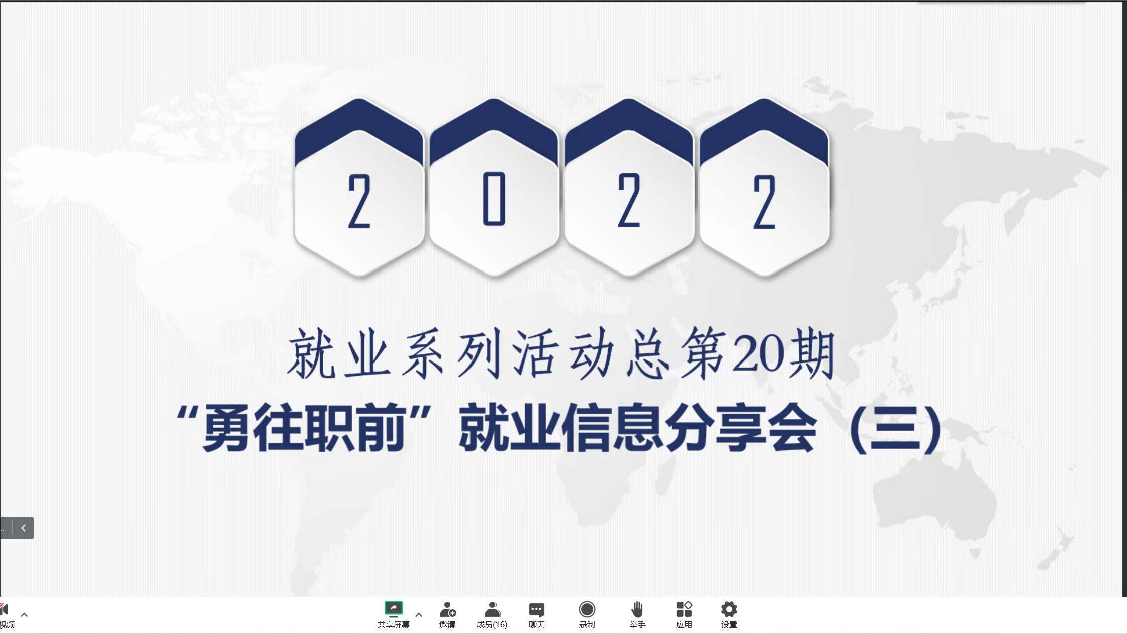 为进一步加强js33333金沙线路检测对研究生就业指导,推进js33333金沙线路检测毕业生顺利签约,10月21日上午,js33333金沙线路检测通过腾讯会议线上开展“勇往‘职’前”就业信息分享会(三),2020级研究生参加了本期活动。