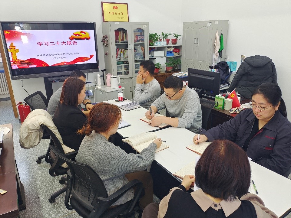 2022年11月16日,机械基础实验教学中心教工党支部开展学习二十大精神会议主题党日活动。会议由支部书记王丽慧主持。