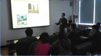 齐林博士围绕整形手术辅助机器人控制关键性技术,向在场的师生们展示了他最新的研究进展,主要从整形手术辅助机器人系统构成、基于手-眼控制多机器臂协调作业、整形手术骨钻削3D有限元分析与建模动态力分析等几个方面对机器人控制技术进行了研究,探索通过辅助机器人控制来达到精确实施整形手术的目的。最后,齐博士将其在香港中文大学课题组有关机器人控制研究课题进行了介绍,并回答了现场师生们提出的问题,现场气氛十分浓厚。