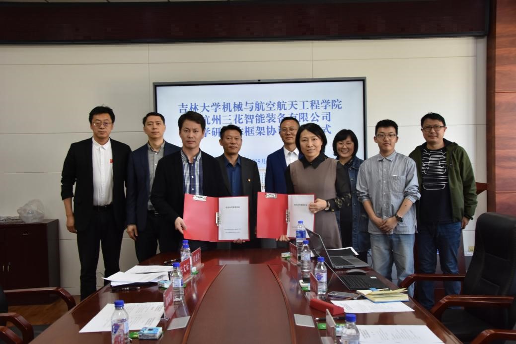 浙江三花汽车零部件有限公司人力资源部总监李罕凤、js33333金沙线路检测副院长马志超作为双方代表签署产学研合作框架协议。