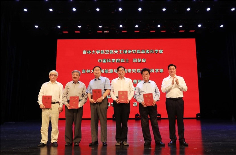 会上,李元元为多吉院士颁发吉林大学双聘院士聘书,为闫楚良院士颁发吉林大学航空航天工程研究院高级科学家聘书,为曹耀峰院士、多吉院士、刘嘉麒院士、高锐院士颁发吉林大学新能源与环境研究院高级科学家聘书。
