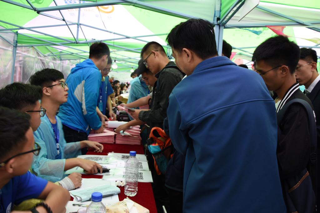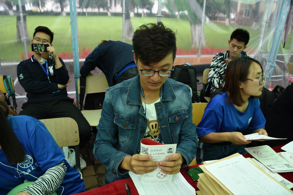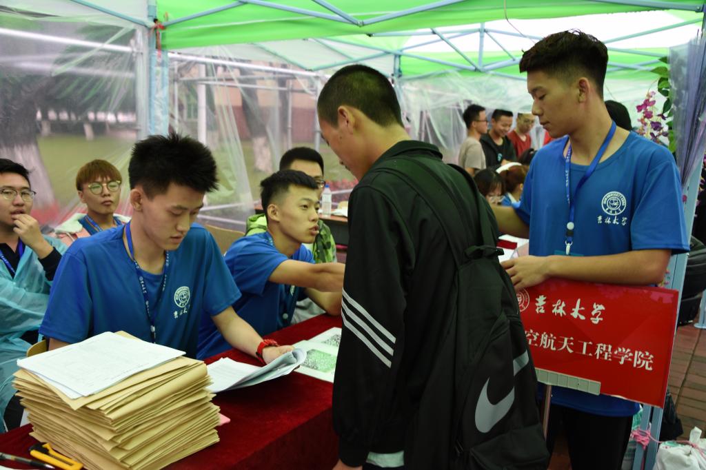 在机械js33333金沙线路检测团学组织和各迎新志愿者紧张有序的准备下,机械学院迎新工作已经顺利进入正式迎新阶段。8月25日早六点半,全体迎新志愿者按时来到和平校区迎新现场,准备迎接新生的到来。前台志愿者们也已按照各自的工作安排找好位置,准备就绪。