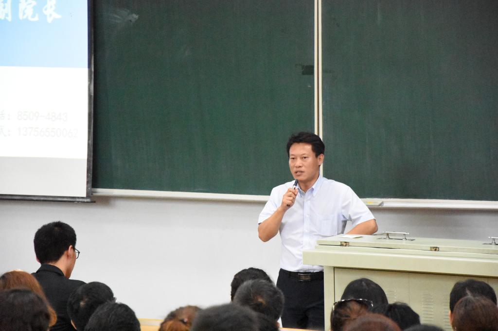 院长赵宏伟在讲话中对学院历史、学科情况进行了介绍,使家长们对学院科研、教学与师资等方面有了进一步的了解。赵院长又对大学如何学习等问题进行了详细解释,希望同学们能尽快融入大学的学习氛围,在学习之余积极参与社团组织,拓宽人际交往和学术视野,争取全方位发展。