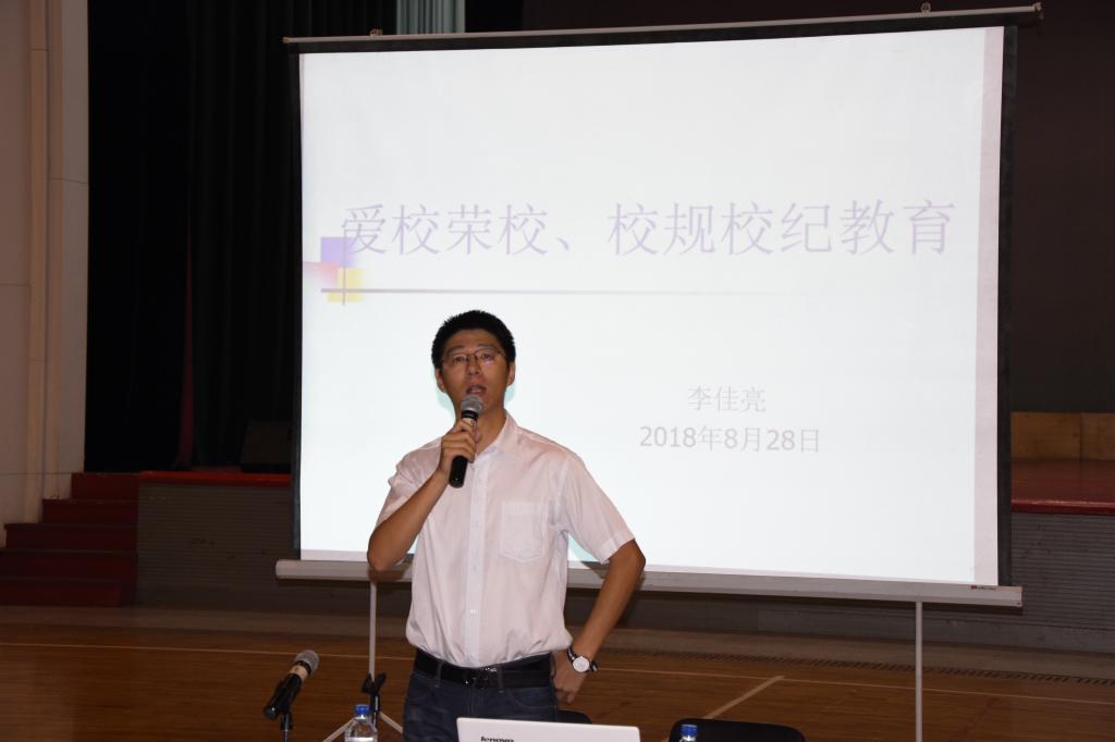 为进一步加强学院精神文明建设,加强院风学风建设,强化学生校规校纪意识,巩固新生入学教育效果,js33333金沙线路检测于8月28日15时在和平校区学生文化活动中心举行了2018级新生爱校荣校,校纪校规专题教育讲座,此次讲座由院学生办公室主任李佳亮主讲,2018级全体新生参加了这次讲座。