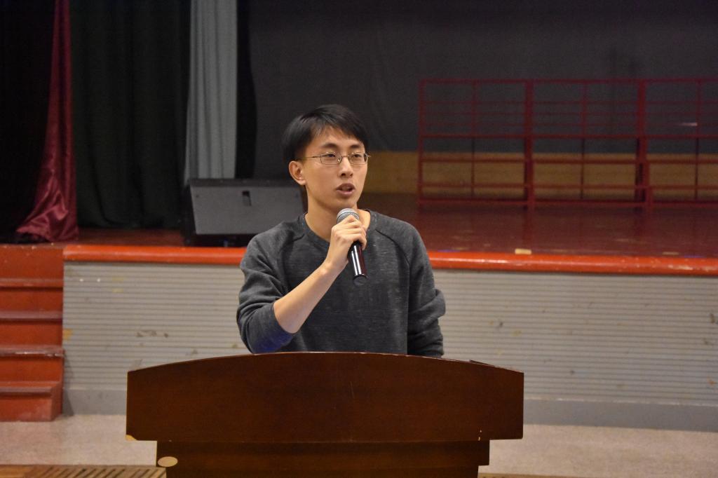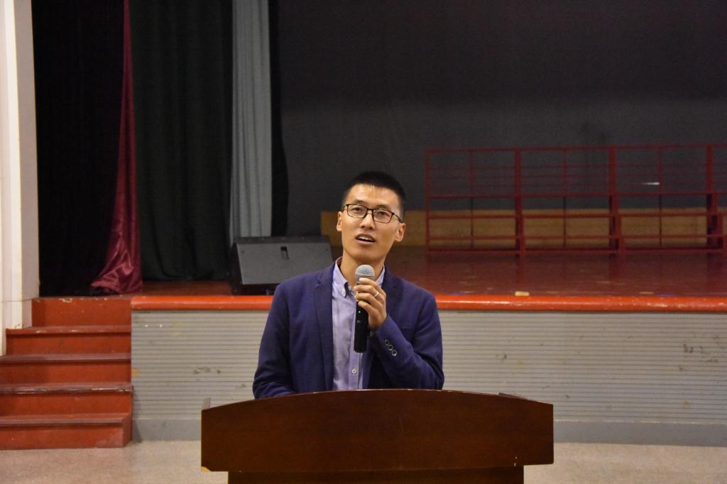 大会第一项,由2016级优秀学生代表王硕邦、王瑞发言,二位学长根据各自的经历就大学学习和学生工作两方面给出建议。他们希望同学们能合理规划自己的大学生活,以饱满积极的热情珍惜这来之不易的机会。从参与科研竞赛到发表论文专利,从社会实践活动到志愿文娱服务,时刻以学习成绩为第一要求,同时在团学或其它组织中做好学生工作,锻炼自己的综合能力。